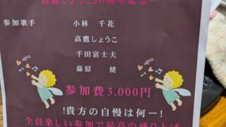 高鷹しょうこさんの歌手活動20周年を記念したWelcome partyにけんさんが出演します! 是非応援に来て下さい! 日時 2025年11月1日(金) 15:00より 金額 3000円 場所 高鷹音楽サロン